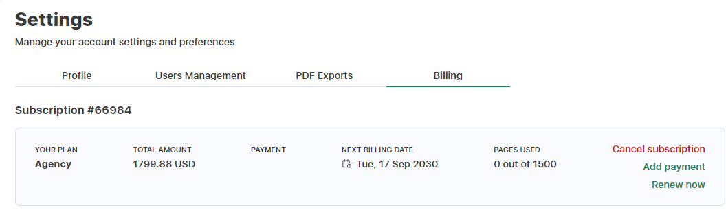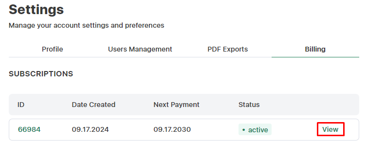 Make sure you are on the Billings tab before clicking on View next to the subscription you want to cancel.